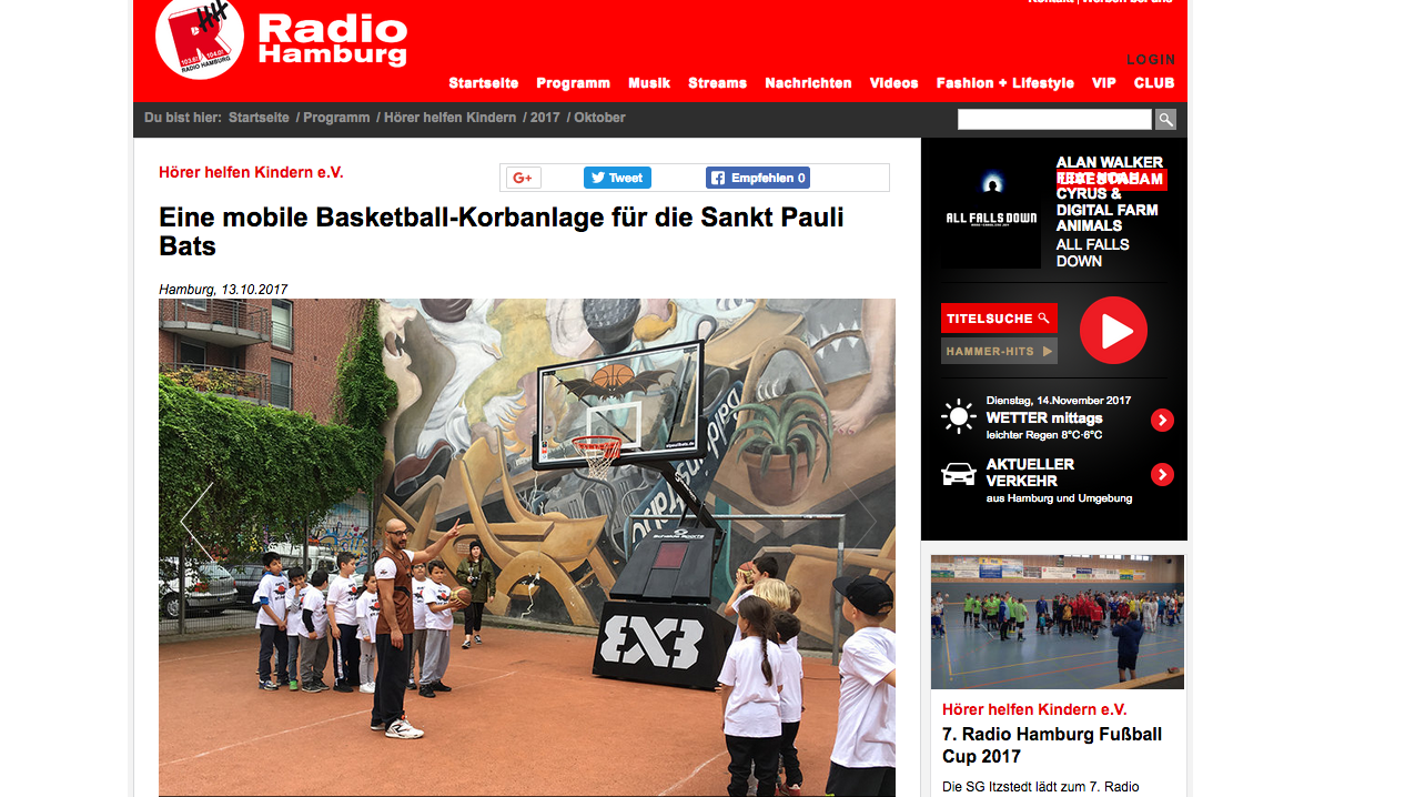 Am 13.10.2017 lief das Interview mit unseren Trainer Samer bei Radio Hamburg. Die Leiterin des Vereins, Martina Müller von „Hörer helfen Kindern e.V.“, sprach mit Samer über das Projekt „Integration durch Streetball“.