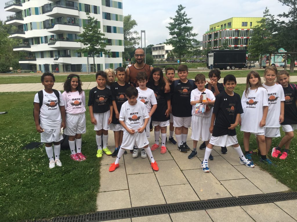 Wir sind der Meinung, dass mehr Basketball-Sport in der Schule angeboten werden sollte. Besonders für die kleinsten. In der Grundschule St.Pauli leitet unser Trainer Samer Ismailat seit April 2017 eine Basketball-AG für 3./4. Klassen. Im September 2017 nahm er nebenan, an der Ganztagsschule St.Pauli, eine Basketball-AG für 5./6./7. Klassen und eine Streetball-AG für 8./9./10. Klassen an. Die Streetball-AG ist ein neues, in Hamburg seltenes Konzept um die Kinder wieder mehr für den Basketball-Sport auf der Straße zu animieren. Das ist die Grundlage um später das Basketball spielen in der Halle zu erlernen. Seit Januar 2018 arbeitet er, ebenfalls an der GtS St. Pauli,als Sportlehrer für 5.-10. Klassen.